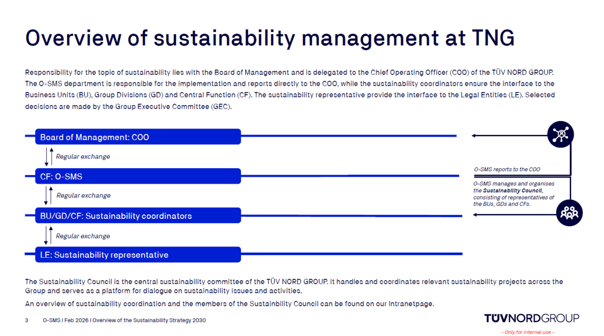 The TÜV NORD GROUP has introduced its new Sustainability Strategy 2030, strengthening its long-term commitment to responsible, future-oriented corporate development. The strategy is built around the three core fields Company, People, and Environment, aligning with international guidelines such as the UN Sustainable Development Goals. With clear targets—including a 50% reduction in Scope 1 and 2 greenhouse gas emissions by 2030—the Group aims to position itself as a sustainability role model while driving internationalization and cultural transformation. The new strategy forms an integral part of the overarching corporate strategy HORIZON 2030 and sets the framework for all sustainability initiatives across the Group.